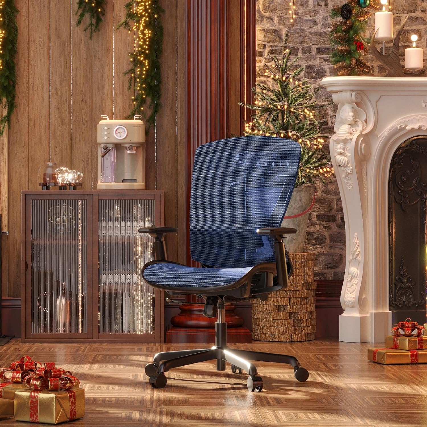 Mesh Office Chair,Ergonomic Computer Desk Chair,Sturdy Task Chair- Adjustable Lumbar Support & Armrests,Tilt Function,Comfort Wide Seat,Swivel Home Office Chair (Blue)